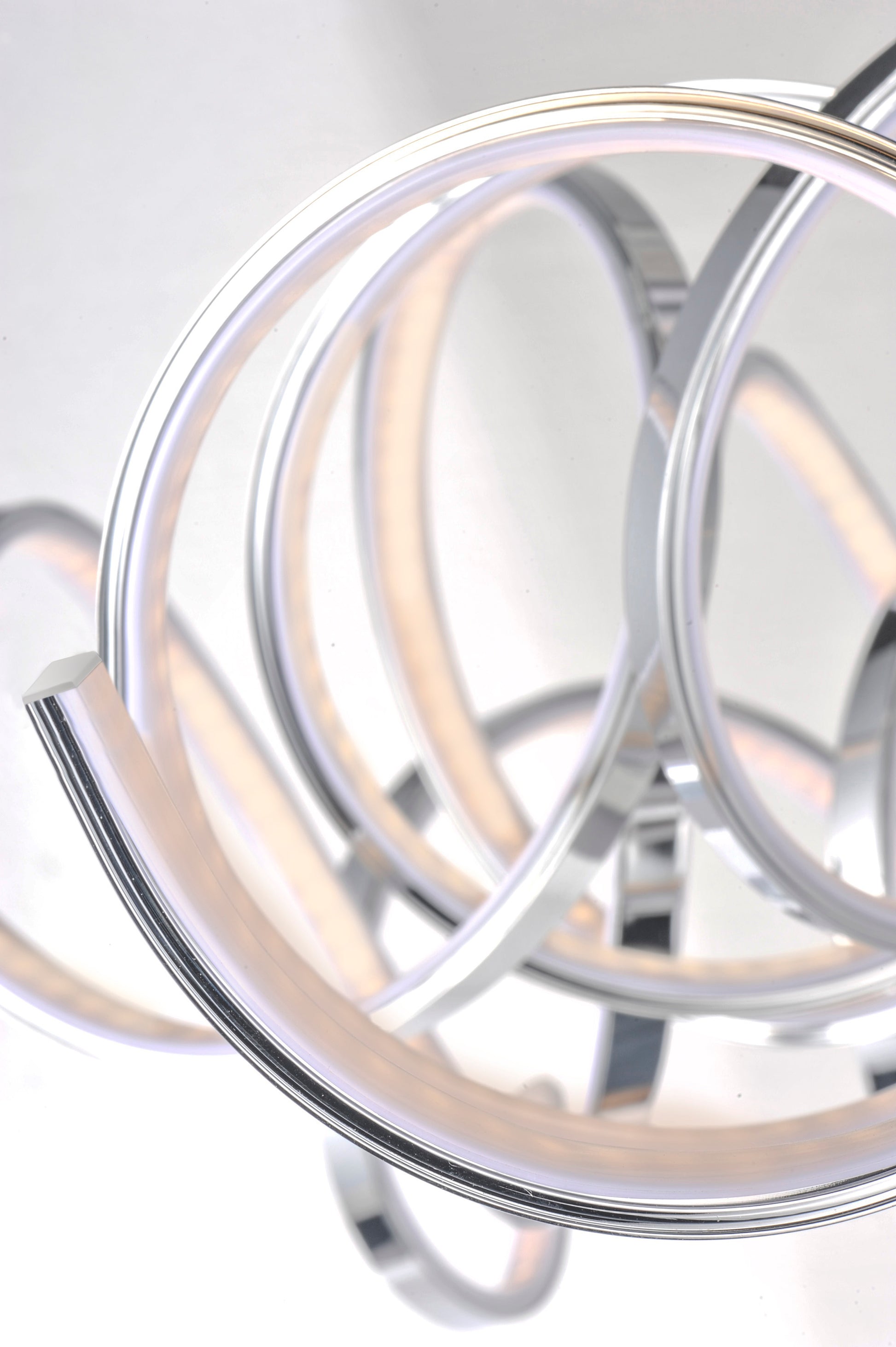 This contemporary collection features a cork screw configuration of Polished Chrome metal surrounding bands of 3000K LED. This eclectic approach to lighting design is sure to please those looking for a unique source of light.