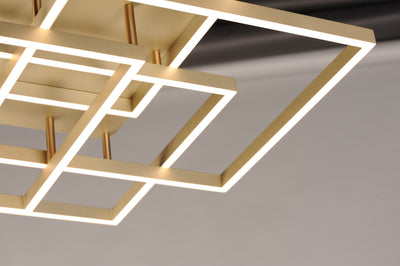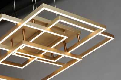 Multiple squares are layered in a geometric pattern to form an interesting lighting sculpture. Enclosed behind the white acrylic lens is a high power LED for even and economical illumination.