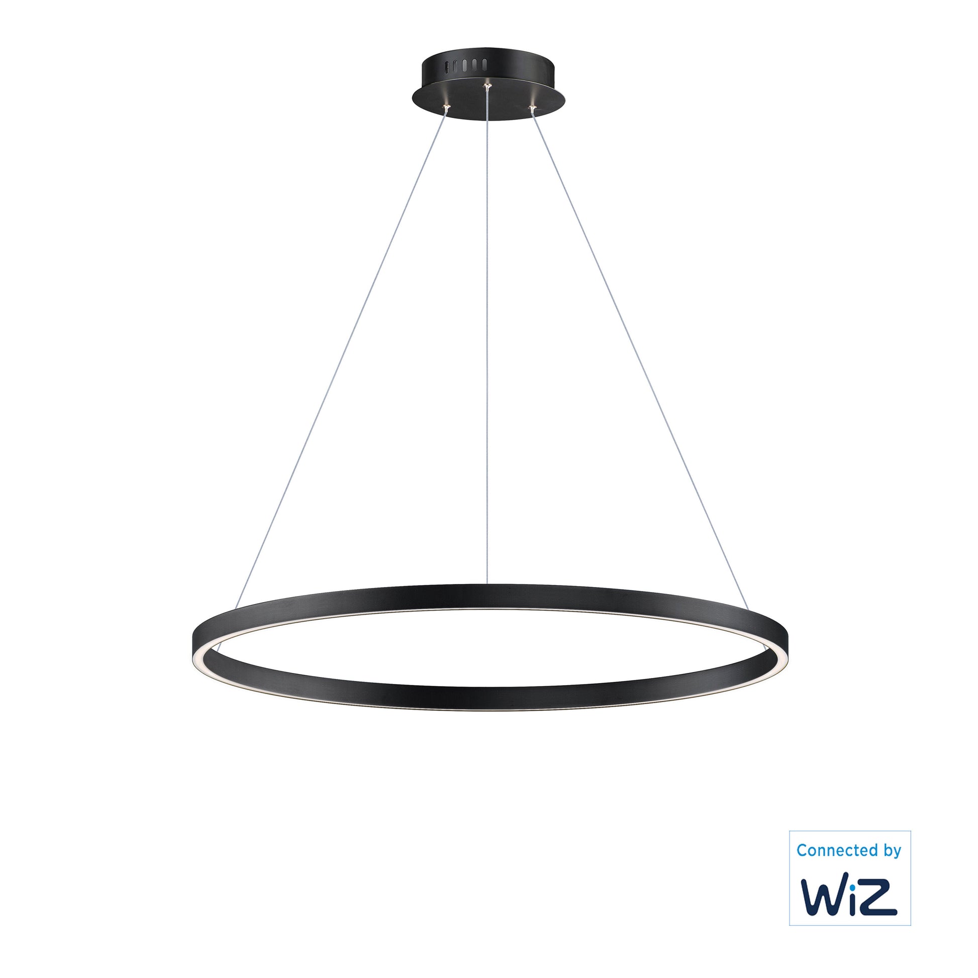 Simple rings formed out of aluminum channel are connected by WiZ. Available in your choice of Matte Black or Brushed Gold, these modern staples of lighting design are enhanced by a groove of LED downlight enabled with smart control functions and features. When connected by WiZ, authorized users can tune the color temperature, set lighting schedules and routines, and freely adjust the temperature of the lighting to match their interiors or set a mood.