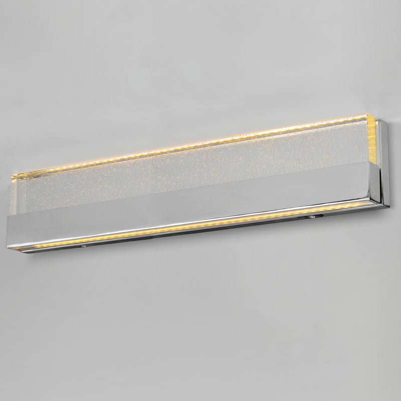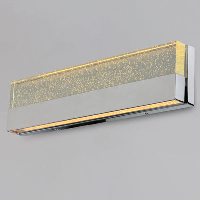 The Fizz Collection's effervescent bubbles encased in rectangular glass cubes come to life when illuminated by high output LEDs. The etched lines add linear detail as they extend from the Polished Chrome fitters.