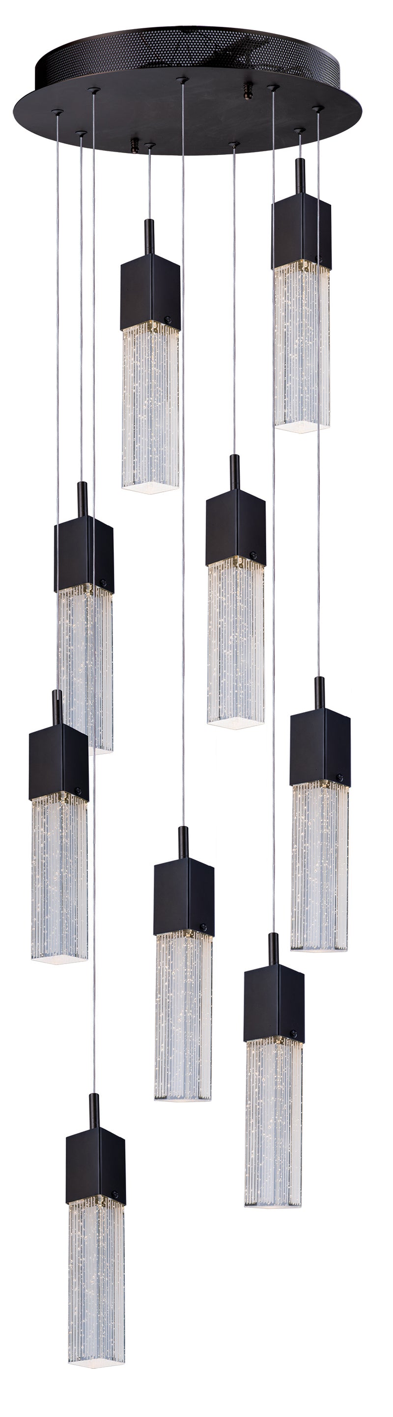 The Fizz Collection's effervescent bubbles encased in rectangular glass cubes come to life when illuminated by high output LEDs. The etched lines add linear detail as they extend from the Polished Chrome fitters.