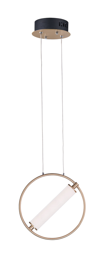 A ring suspends a tube of LED light evenly diffused through opal white acrylic. A striking combination of soft gold and black bring boldness to the collection. By adjusting the rings on the chandeliers, the light element can be positioned horizontally or at an angle. The 3 light multi-pendant suspends three different size rings that can be adjusted to the height you desire.