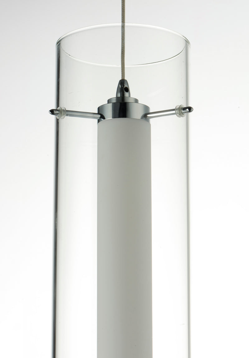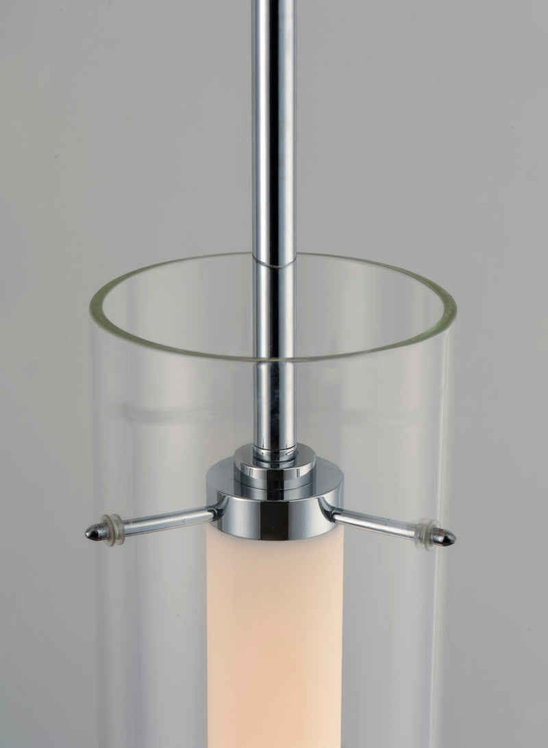 Clear glass outer tube encases a white acrylic inner tube capped with polished Chrome caps creates this clean contemporary design. Powered by high output LED which is nicely diffused make this collection suitable for both residential and commercial applications.