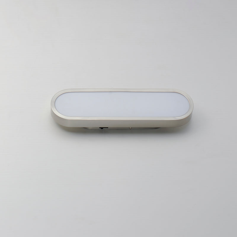 Soft oval forms offer a modern and playful touch to this LED wall mounted sconce. The face of the fixture is a light guided White acrylic diffuser that even illuminates the edge-lit LED light source. The sleek shape is made even more attractive by the bright illumination provided by the fixture itself. Great for use in bathrooms or corridors, the fixture is ADA compliant and available in 4 lengths. A recessed housing behind the fixture not only mounts the fixture with an attractive extension that makes it appear to be floating off the wall, but it also features a 5-step color temperature select switch allowing you to discreetly adjust the LED lighting to 5 settings ranging from a warmer 2700K to 3000-3500-4000 and daylight white 5000K. These additional product features thereby give more latitude to the design applications without special requests.