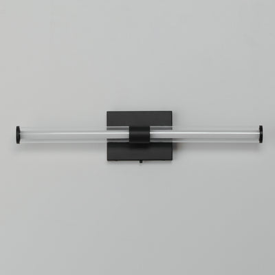 Within the void of clear glass, a white cylindrical tube of LED light extends in two directions. The evenly distributed light source can be adjusted to 5 selectable color temperatures, from warm 2700k to a cool 5000K and neutral white light sources in between. Available in three finish options: matte Black, Natural Aged Brass, and Polished Chrome, these sconces are great for use in bathrooms and along corridors with extensions less than 4 inches for ADA compliance.
