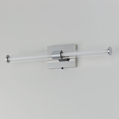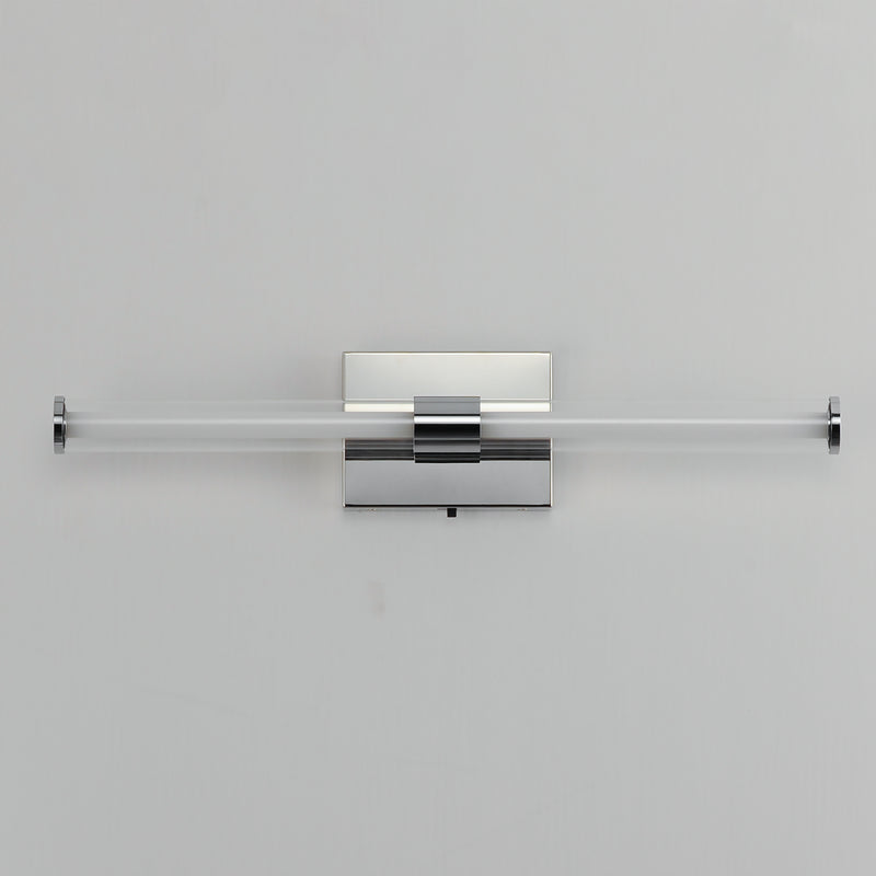 Within the void of clear glass, a white cylindrical tube of LED light extends in two directions. The evenly distributed light source can be adjusted to 5 selectable color temperatures, from warm 2700k to a cool 5000K and neutral white light sources in between. Available in three finish options: matte Black, Natural Aged Brass, and Polished Chrome, these sconces are great for use in bathrooms and along corridors with extensions less than 4 inches for ADA compliance.