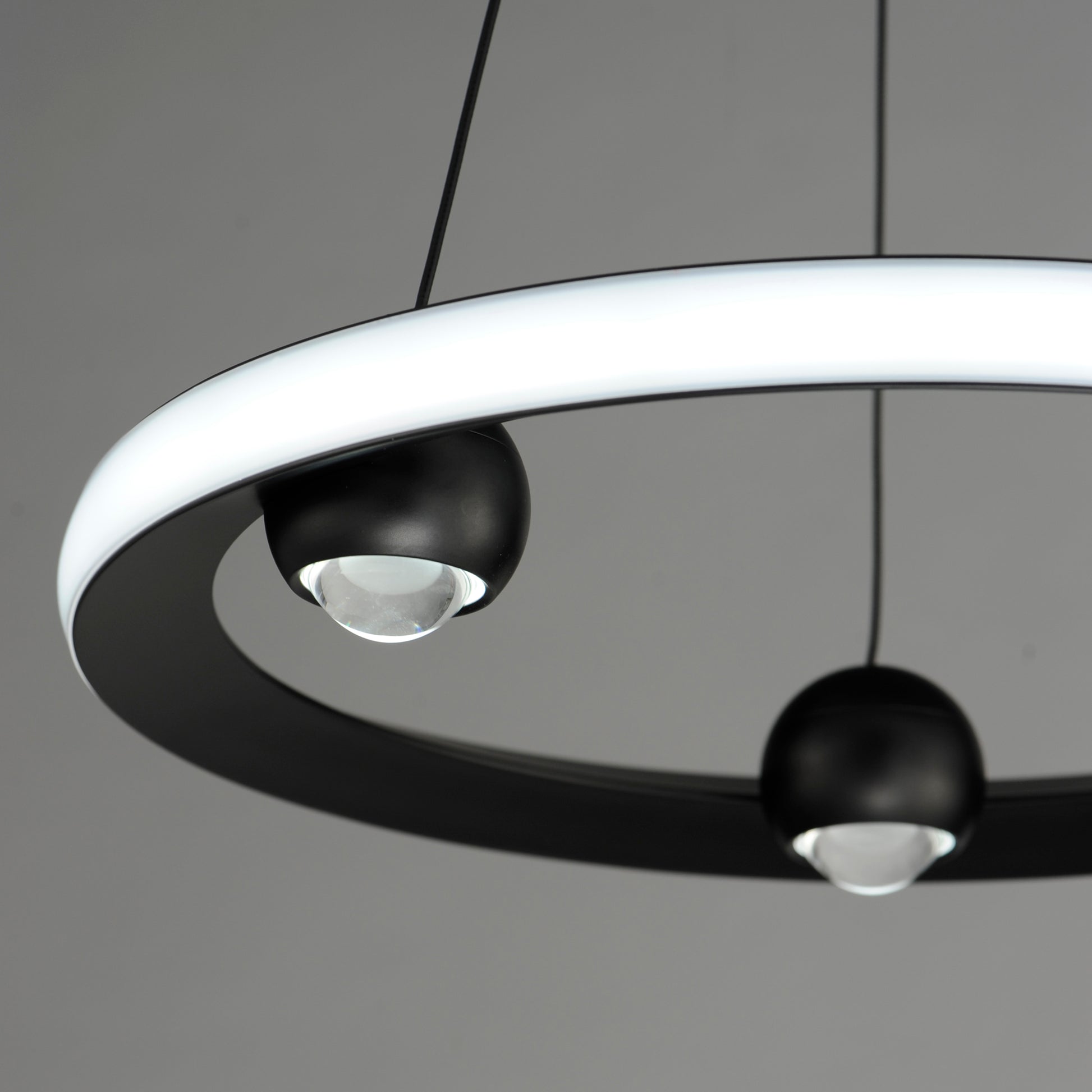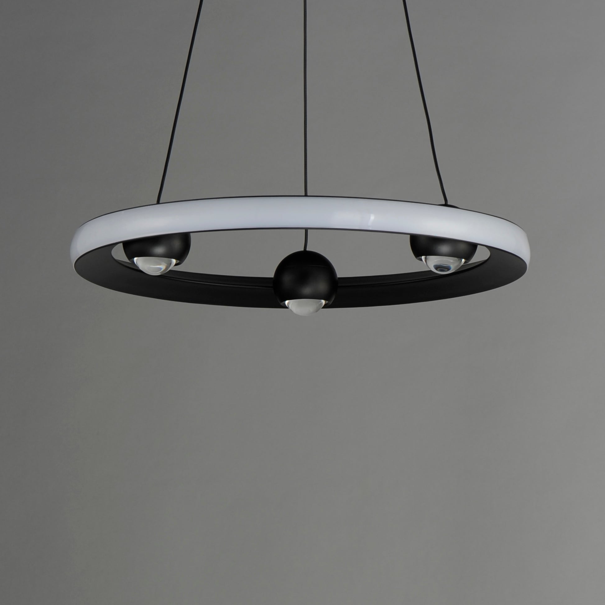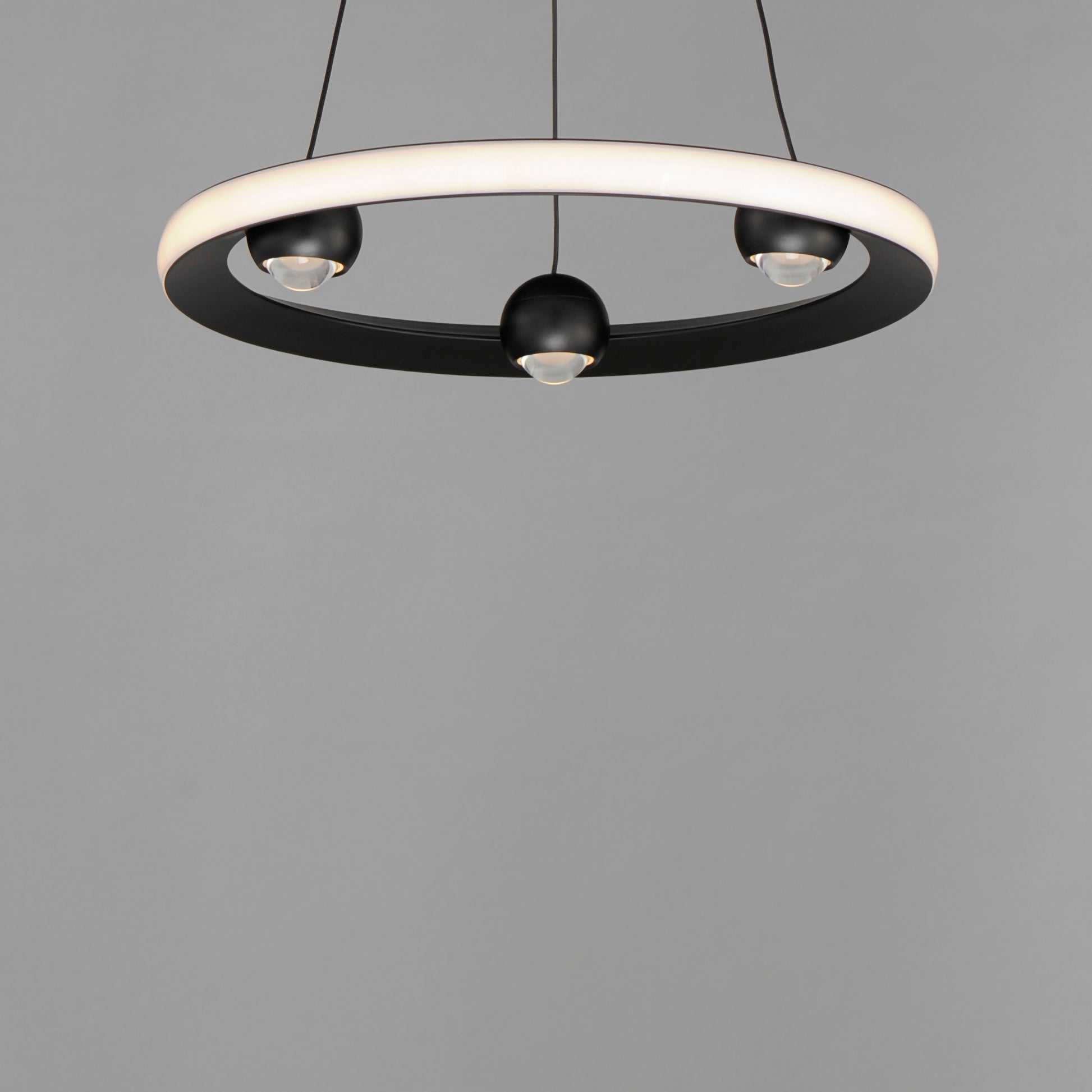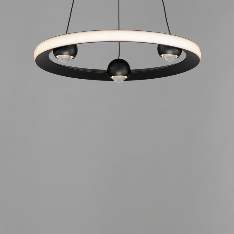 Introducing a new take on the now classically modern LED ring, large illuminated spheres act as "nodes" to support the tapered aluminum channel while also providing additional down light. Featuring a CCT selectable switch, the collection conveniently allows end users to select from warmer white light to energizing bright white lighting in 5 color temperature options. The convenient functionality is matched with its performance, meeting California's JA8 Title 24 requirements. Rated to deliver higher lumens per watt and power sources that supports range voltage input and 3 in one dimming, this product is designed to meet the requirements of both home and commercial projects.