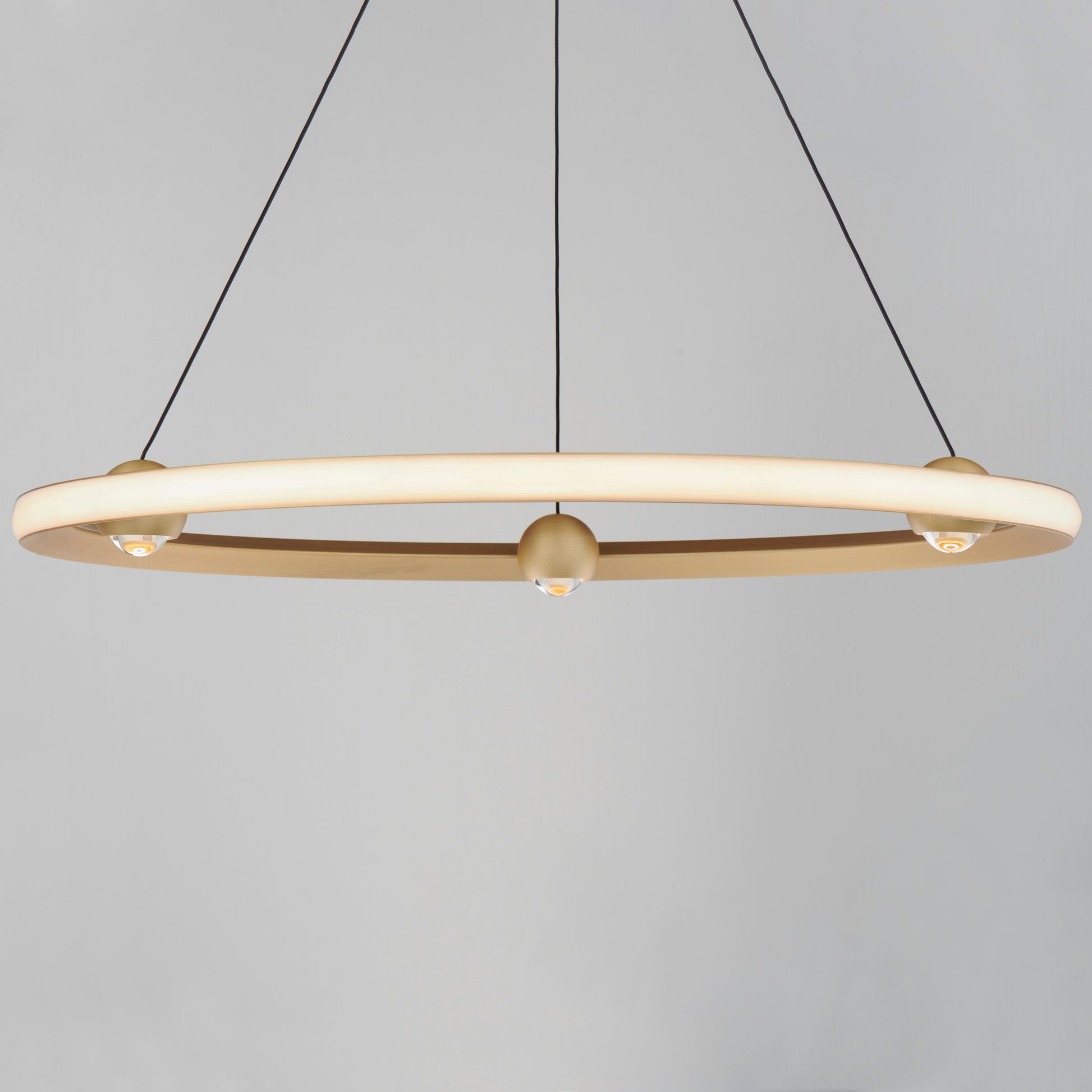 Introducing a new take on the now classically modern LED ring, large illuminated spheres act as "nodes" to support the tapered aluminum channel while also providing additional down light. Featuring a CCT selectable switch, the collection conveniently allows end users to select from warmer white light to energizing bright white lighting in 5 color temperature options. The convenient functionality is matched with its performance, meeting California's JA8 Title 24 requirements. Rated to deliver higher lumens per watt and power sources that supports range voltage input and 3 in one dimming, this product is designed to meet the requirements of both home and commercial projects.