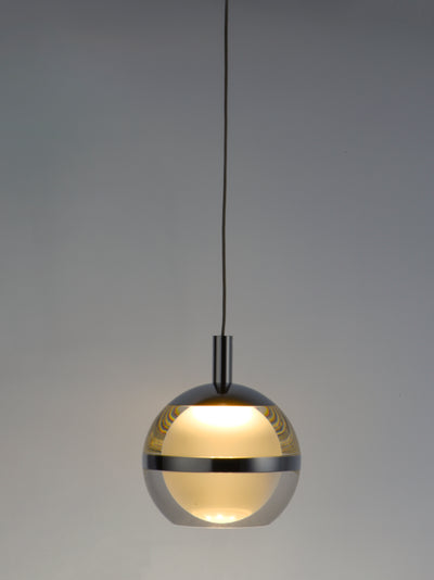 Orbs of crystal Clear acrylic are trimmed with a metal band and frosted inside for excellent light diffusion. The bottom is dimpled for a unique optical effect.