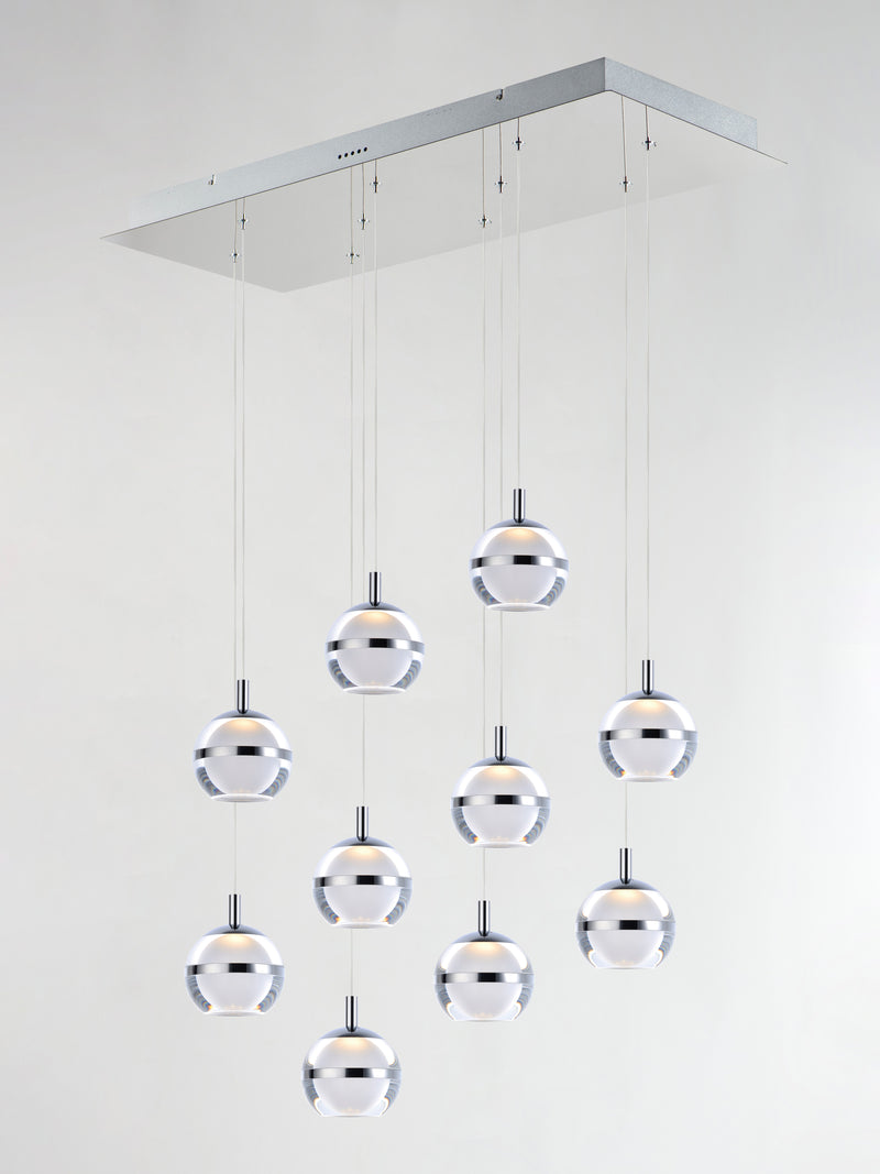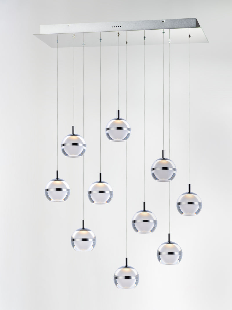 Orbs of crystal Clear acrylic are trimmed with a metal band and frosted inside for excellent light diffusion. The bottom is dimpled for a unique optical effect.