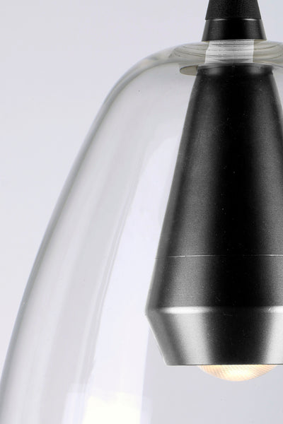 Clear glass domes are suspended from a machined aluminum font finished in your choice of two tone Silver with a Polished Chrome accent or Black with a brushed Coffee finish. Housed inside the machined font is a high power LED module which illuminates without glare.