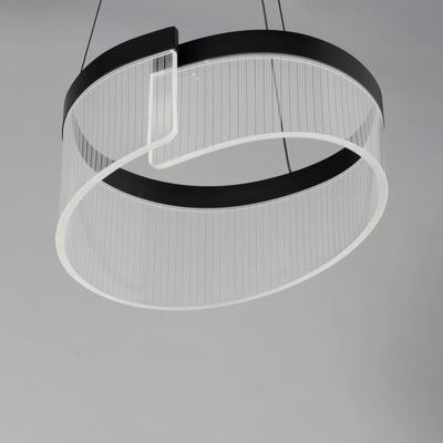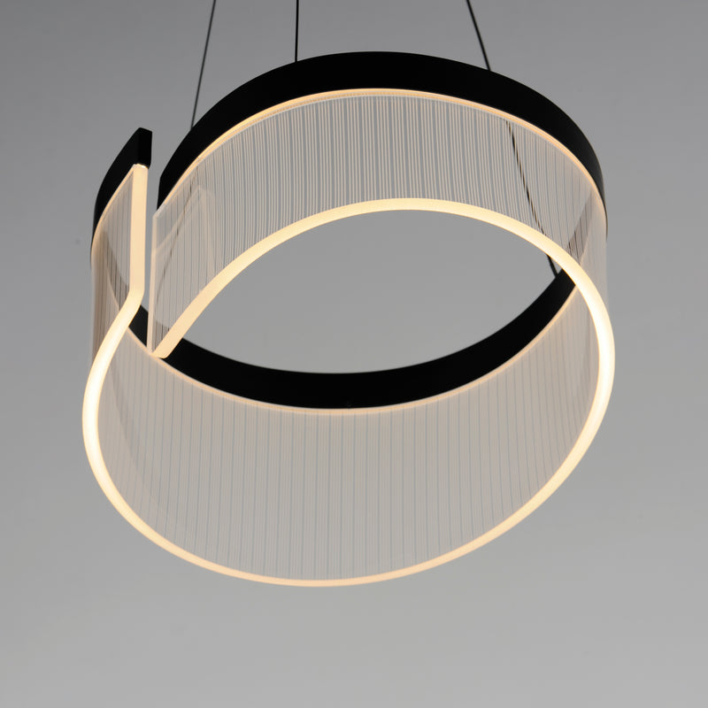 Composed of gently curving aluminum channels in Matte Black that support a patterned translucent acrylic arranged in groups of vertical stripes, this series of pendants and coordinating ADA sconce express a musical quality in brilliant LED light. The wall sconce visibly suggests the shape of a piano, while the pendants return inward where they bend at the ends in an instrumental, elegant shape. A story told in simple forms, the collection is illuminated by dedicated LED light sources concealed within the frames enhancing the translucent undulating slabs of patterned acrylic. Their sculptural form is sure to add wonder to both classical and modern settings.