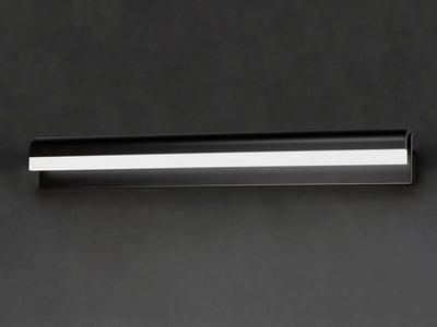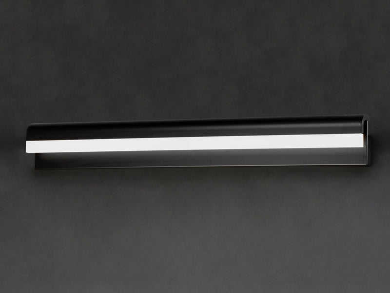 An aluminum frame of Polished Chrome or Black, cascades downward and supports a frosted acrylic diffuser which nicely diffuses the light from the LED enclosed. A perfect complement to the similar bath hardware found in many homes today.