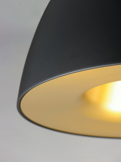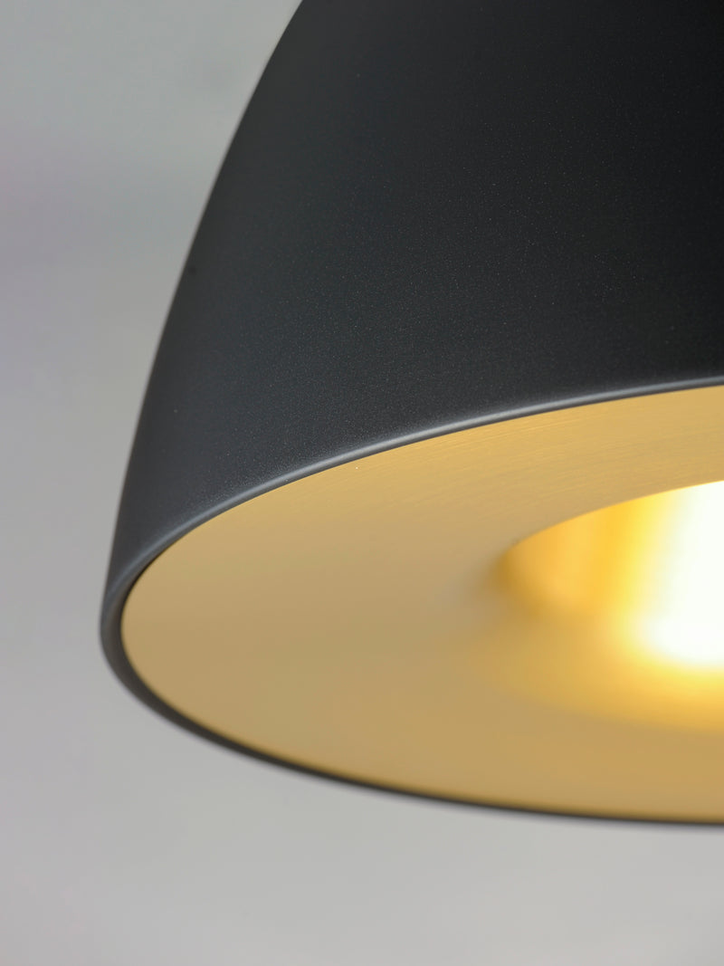 Classic contemporary shaped pendants are constructed with a uni-body design, where the bottom is a continuation of the top. A dramatic two-tone finish is available in your choice of Black/Satin Brass, Dark Gray/Coffee, or Satin Nickle/Black. The LED light source is concealed to reduce glare while providing ample light below.