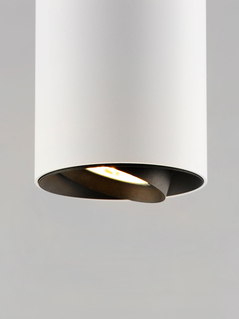 Classic cylinder pendants of White with a very unique feature. The bottom is gimbaled to allow the light to be adjusted 30 degree to direct the light where you most need it. Each fixture is supplied with a replaceable LED reflector bulb.