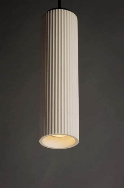 Pleated cylinder shades casted in White plaster contrast matte Black structures that provide a crisp, contemporary design. JA8 Listed LED GU10 lamps included brightly illuminate spaces below with excellent color rendering. A surface mount option features a joint that can be positioned to direct the light for the added feature of directing the shades where needed.