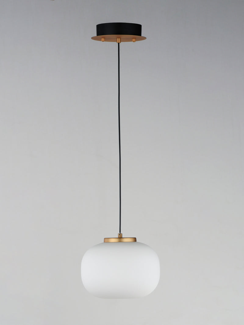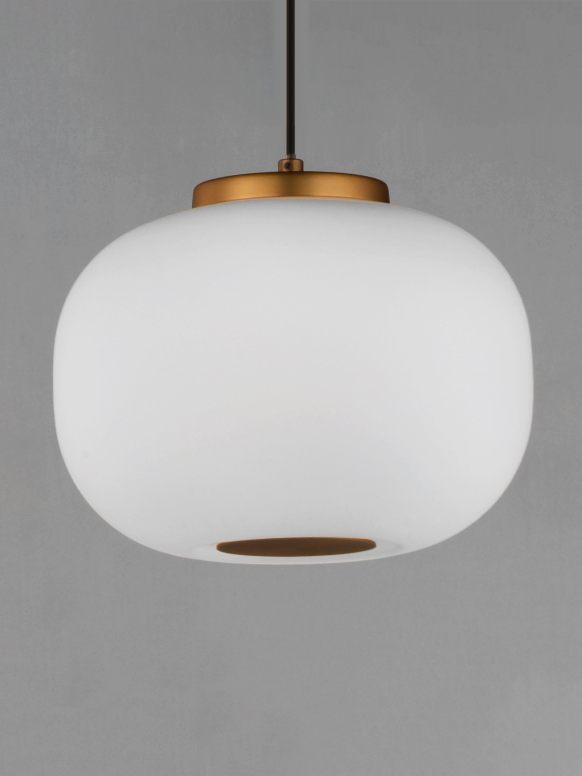 Inspired by Japanese lanterns, this soft contemporary collection features Satin White glass shades of various shapes and sizes mounted on metal frames finished in a dramatic two-tone Gold with Black accents.