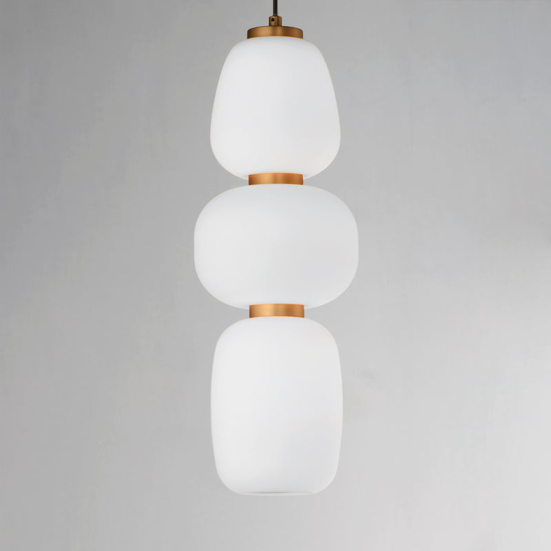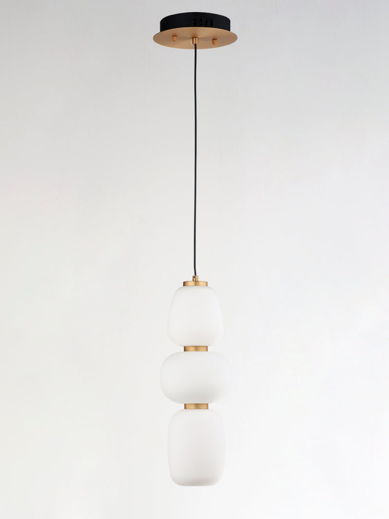Inspired by Japanese lanterns, this soft contemporary collection features Satin White glass shades of various shapes and sizes mounted on metal frames finished in a dramatic two-tone Gold with Black accents.