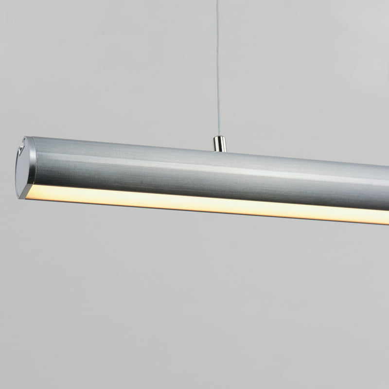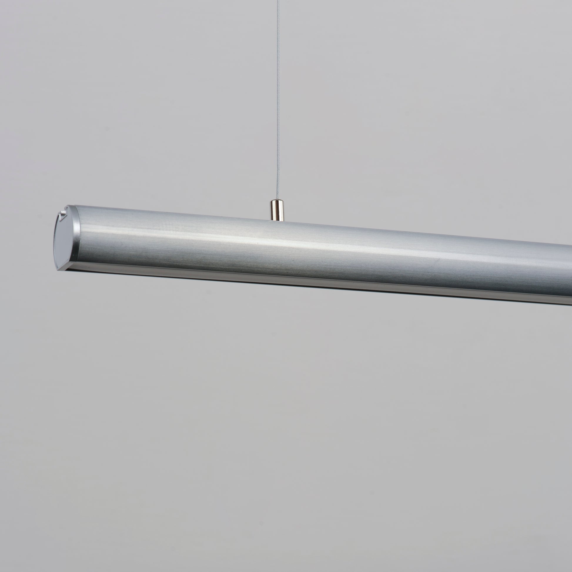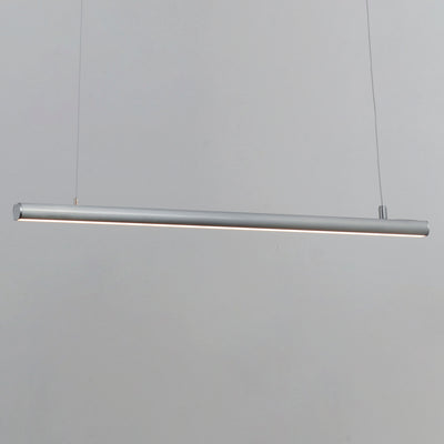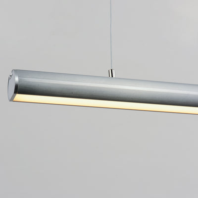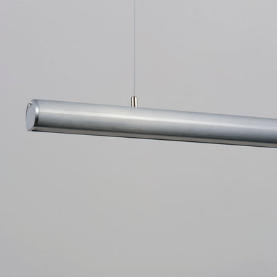 Elongated tubes of LED light are housed in incredibly small 1" diameter aluminum and suspended by nearly invisible support cables. Engineered to connect the various lengths end-to-end or with use of the rigid, angled adapters, adds endless applications for creativity and function. Each length includes a power feed within a surface mounted canopy and non-electrical support cables that standoff using ceiling anchors. With no additional power source components required, the continuous run pendants in this series are a welcome convenience for commercial applications. Lengths range from 36" to impressive 96" long. Individually, the fixtures provide ample lighting downward with minimal disruption to the architectural sight lines of a space. Available in Black, White, and brushed Aluminum finishes these are exemplary streamlined forms with functional purpose.