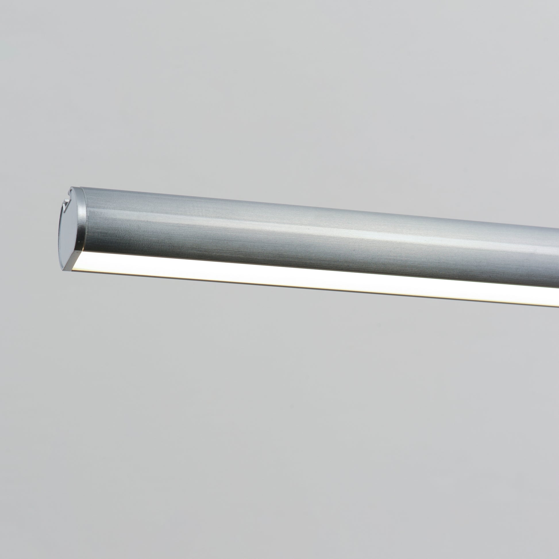 Elongated tubes of LED light are housed in incredibly small 1" diameter aluminum and suspended by nearly invisible support cables. Engineered to connect the various lengths end-to-end or with use of the rigid, angled adapters, adds endless applications for creativity and function. Each length includes a power feed within a surface mounted canopy and non-electrical support cables that standoff using ceiling anchors. With no additional power source components required, the continuous run pendants in this series are a welcome convenience for commercial applications. Lengths range from 36" to impressive 96" long. Individually, the fixtures provide ample lighting downward with minimal disruption to the architectural sight lines of a space. Available in Black, White, and brushed Aluminum finishes these are exemplary streamlined forms with functional purpose.