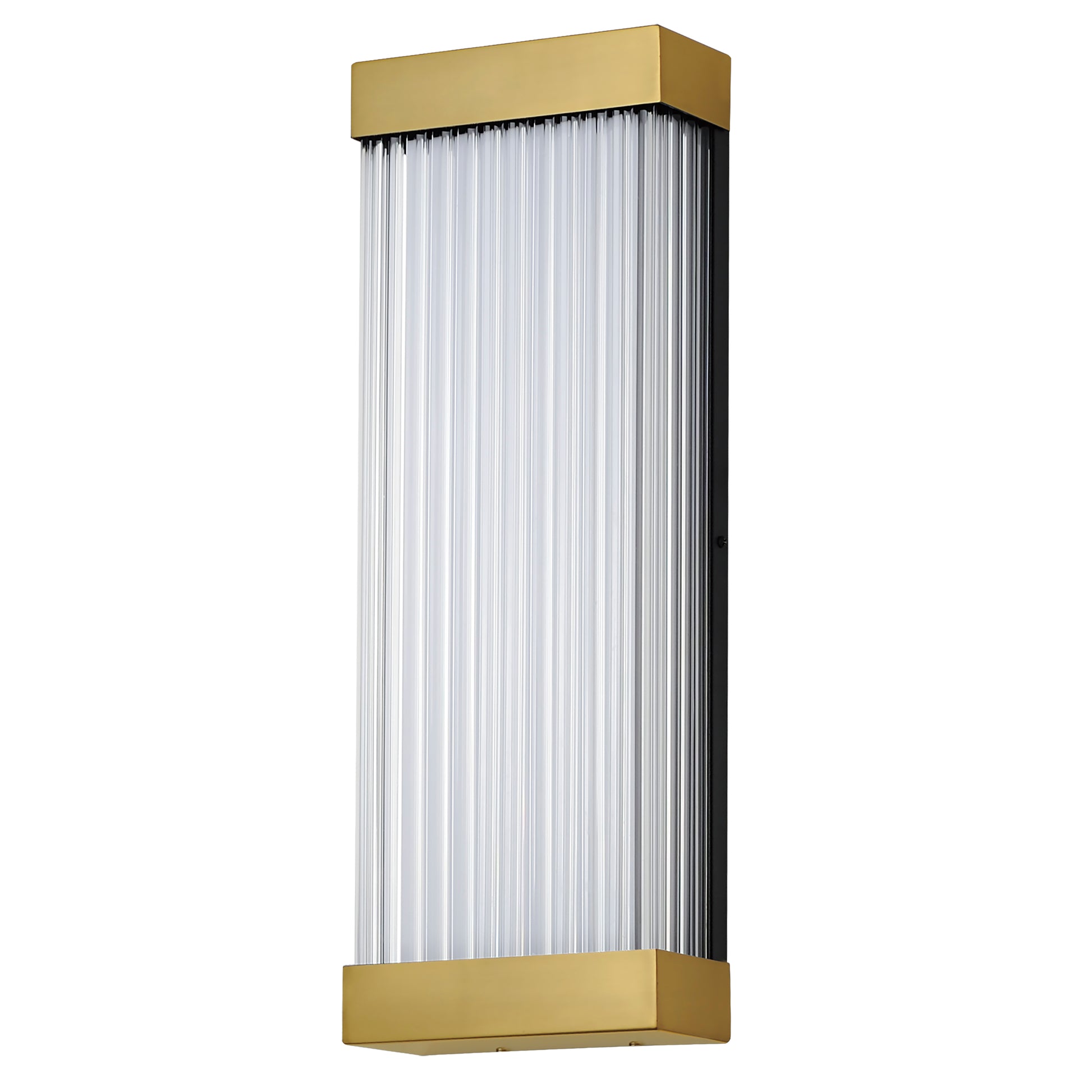 A colonnade of faceted crystal columns form these rectangular wall sconces suitable for wet locations. The crystals are backlit with an evenly distributed LED light source that is set within non-corrosive Aluminum and Stainless Steel frames. With an extension compliant for ADA applications, this collection can be used on the interior or exterior of any space.