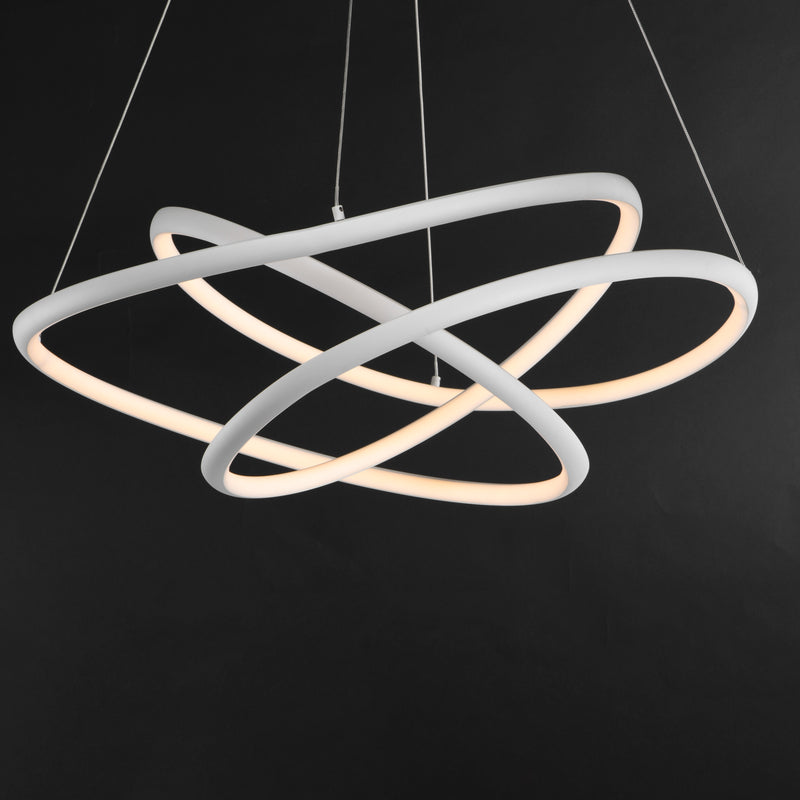 Arched Matte White aluminum channel is artfully formed into unique lighting sculptures. Two rows of LEDs are used to double the light output but are fully dimmable for your comfort level.