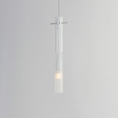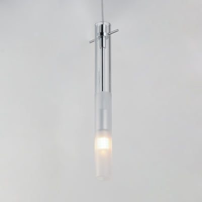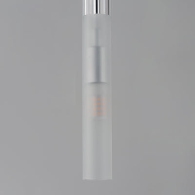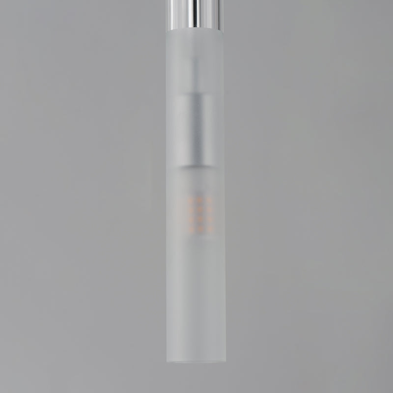 Slender Clear glass tubes sheath a Polished Chrome rod that supports small LED lamps. The glass is etched at a dividing line in the glass to softly diffuse the light. Available in two lengths of glass tube, the pendants are also available in multiple configurations that create a modern candle-like cluster. The surface mounted option supports the glass on a structure that allows it to hang freely for dual purpose as a ceiling flush mount or a hanging glass shade when mounted to a wall. JA8 Listed LED G9 lamps are provided for efficient lighting and reduced energy consumption.