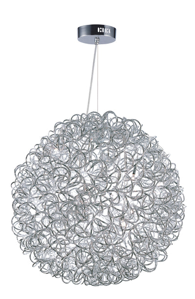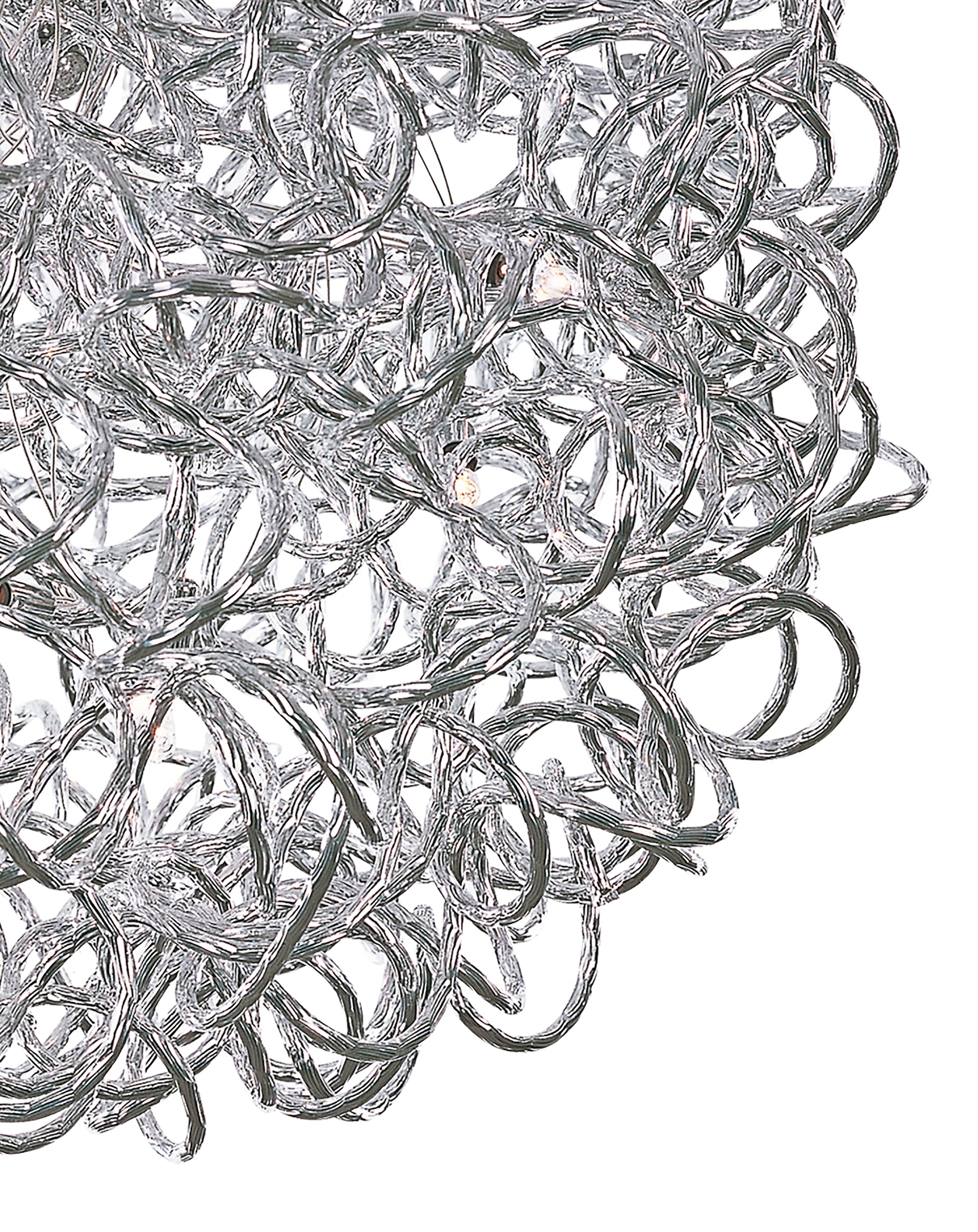 Sculptures created from Polished Chrome aluminum rods are formed by hand into a mod-silhouette, perfect for loft living and cosmopolitan lifestyles. Woven through the interior are strings of clear G4 Xenon lamps that add sparkle as they reflect off of the embellished etched patterns of the aluminum. Fashion forward and style genre-defying, the Dazed collection goes with a myriad of looks from art deco to pop art.