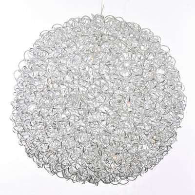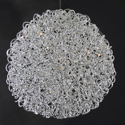 Sculptures created from Polished Chrome aluminum rods are formed by hand into a mod-silhouette, perfect for loft living and cosmopolitan lifestyles. Woven through the interior are strings of clear G4 Xenon lamps that add sparkle as they reflect off of the embellished etched patterns of the aluminum. Fashion forward and style genre-defying, the Dazed collection goes with a myriad of looks from art deco to pop art.