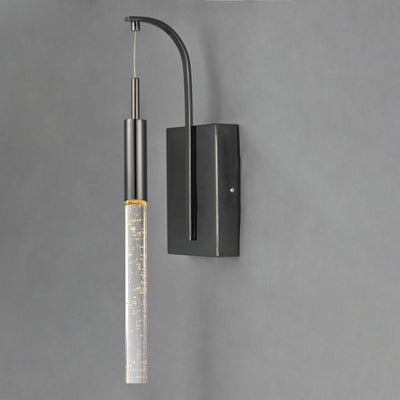Slender beveled cut rods of bubble glass, illuminated by high power LED modules, suspend in an array of fashionable configurations. Available in Black Chrome with Clear bubble glass and Anodized Bronze with Champagne bubble glass.