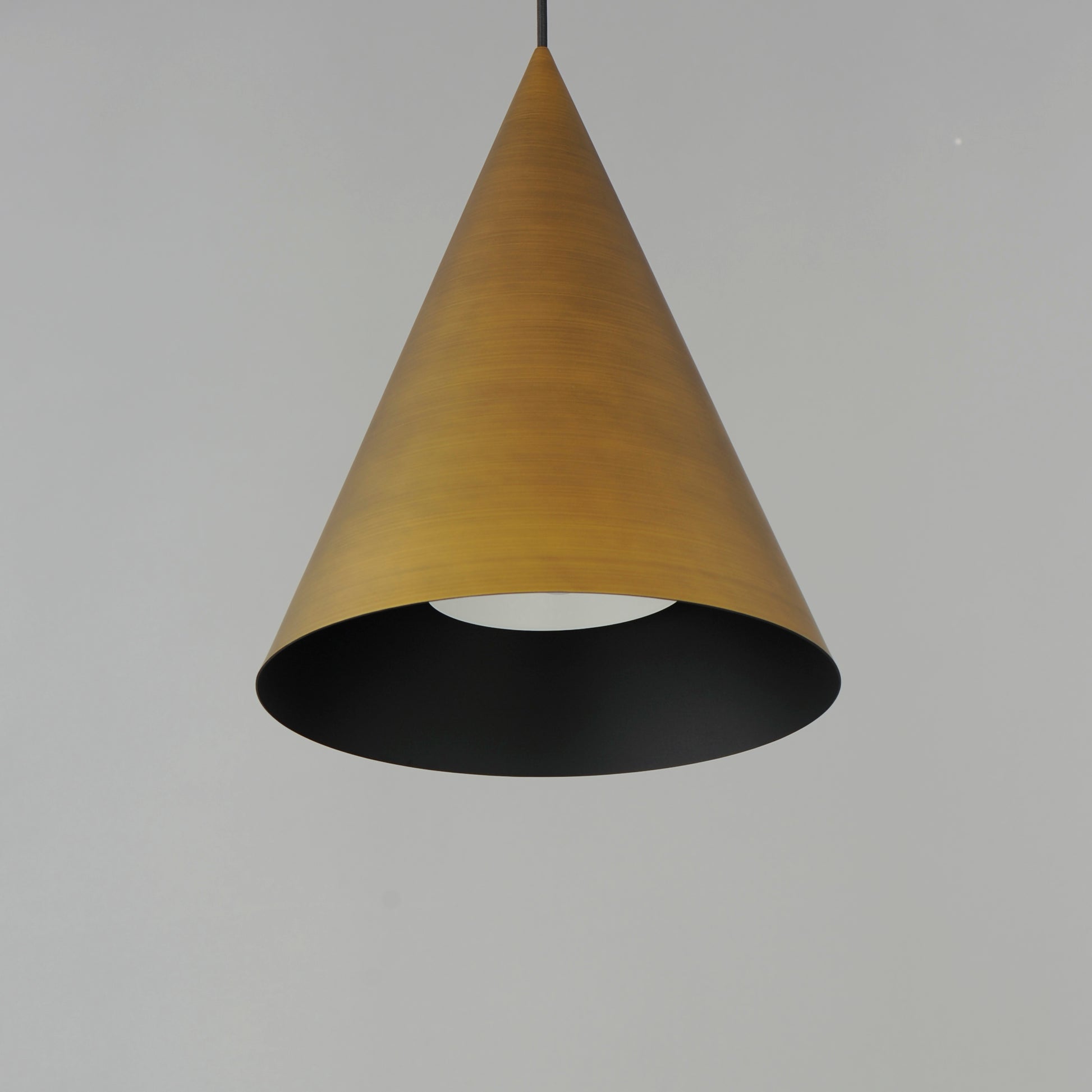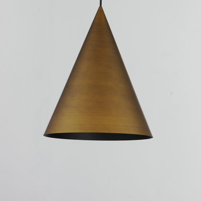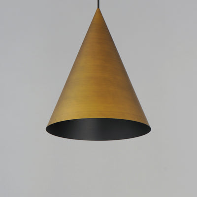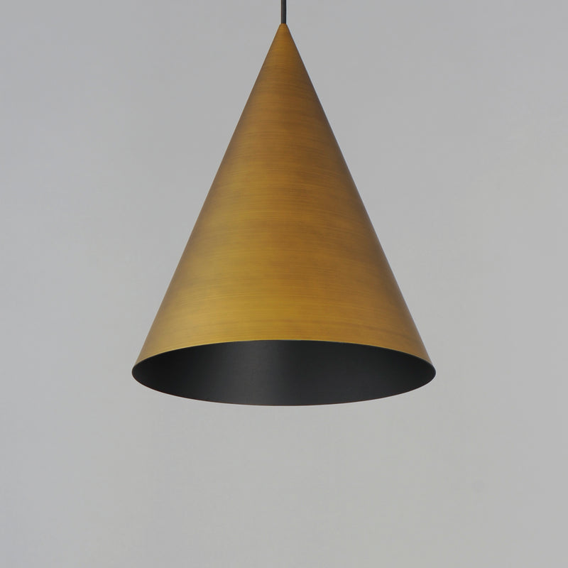 Sleek and simply, the effortlessly chic oversized cone pendants add a modern touch to elevate your space. A surprisingly bright single light source is recessed within a secondary smaller aperture cone shade painted white on its interior to reflect more and beam additional lighting downward without glare. This distinctive cut off accentuates the black finish on the surfaces between two cones. Available in Black and Antique Brass, this pendant series exemplifies the enduring elegance of the cone form in design.