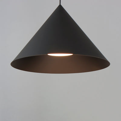 Sleek and simply, the effortlessly chic oversized cone pendants add a modern touch to elevate your space. A surprisingly bright single light source is recessed within a secondary smaller aperture cone shade painted white on its interior to reflect more and beam additional lighting downward without glare. This distinctive cut off accentuates the black finish on the surfaces between two cones. Available in Black and Antique Brass, this pendant series exemplifies the enduring elegance of the cone form in design.