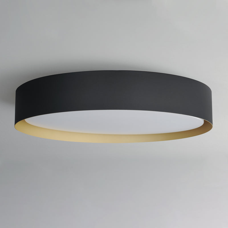 Surrounded by a metal drum shade in a variety of sizes and finishes, an internal shade constructed of acrylic evenly diffuses bright LED illumination. Designed for simpler installation and in an aesthetically pleasing silhouette, these practical metal drum shades are offered in Matte White both inside and out, or enhanced by gold or black interiors for reduced glare and stylish design. The series also features a chic Black with Gold interior color combination shade. To round out the collection, all these color options are also made compatible with a pendant accessory that quickly converts the flush mount fixtures into drum shade pendants.