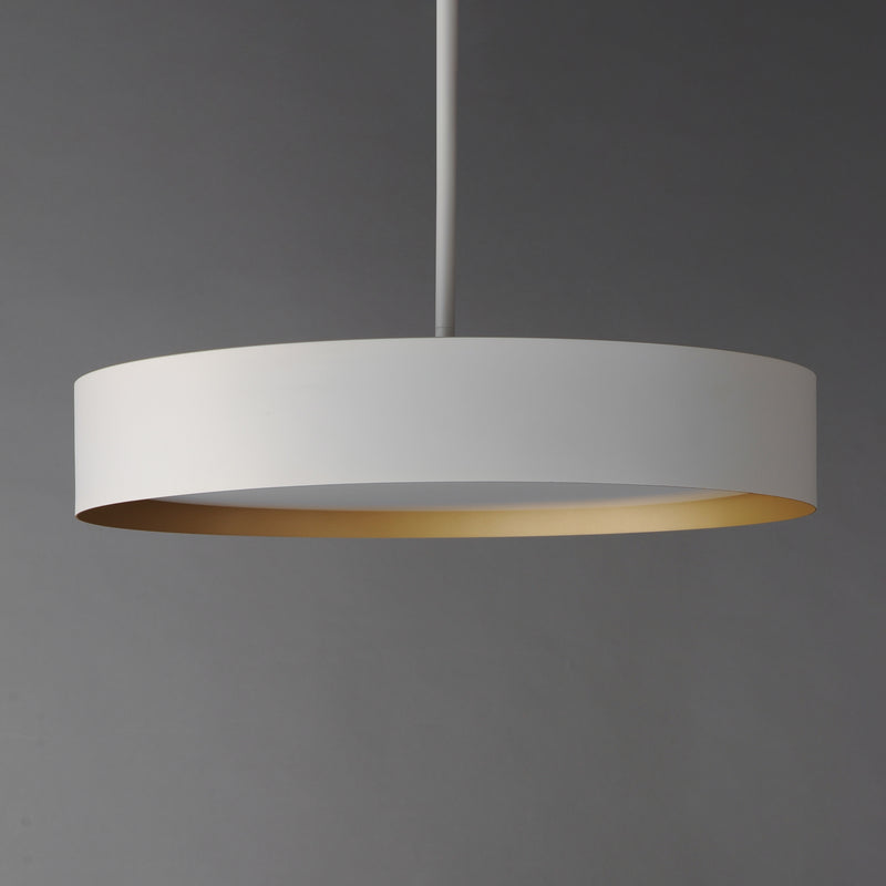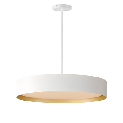 Surrounded by a metal drum shade in a variety of sizes and finishes, an internal shade constructed of acrylic evenly diffuses bright LED illumination. Designed for simpler installation and in an aesthetically pleasing silhouette, these practical metal drum shades are offered in Matte White both inside and out, or enhanced by gold or black interiors for reduced glare and stylish design. The series also features a chic Black with Gold interior color combination shade. To round out the collection, all these color options are also made compatible with a pendant accessory that quickly converts the flush mount fixtures into drum shade pendants.