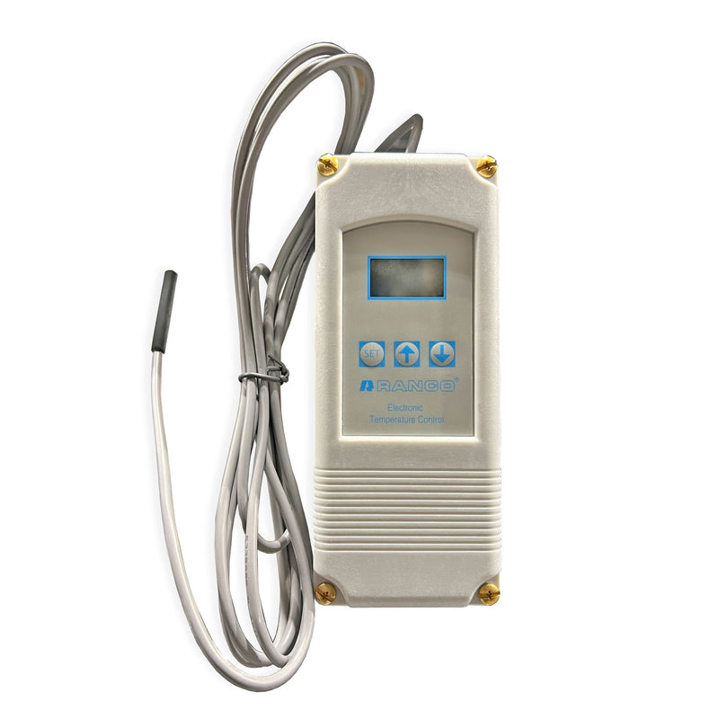 This Ranco ETC is a microprocessor-based family of electronic temperature controls, designed to provide on/off control for commercial heating, cooling, air conditioning and refrigeration. The ETC is equipped with a liquid crystal display (LCD) that provides a constant readout of the sensed temperature, and a touch keypad that allows the user to easily and accurately select the set point temperature, differential and heating/cooling model of the operation.