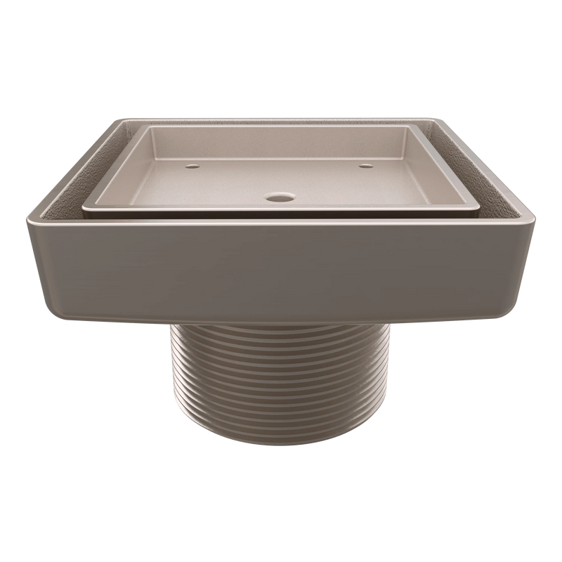 The Ebbe EBBE ETID-4-BN Legacy Solid Forged Brass Tile-In Drain in Brushed Nickel offers a timeless, high-end look combined with lasting performance. Made from solid forged brass and finished in a classic brushed nickel, this 4" tile-in drain blends cleanly with floor tile using a 2.9" textured tray that supports strong thin-set adhesion through five built-in weep holes. A 2" threaded riser allows for smooth height adjustment and accurate leveling, while the removable hair trap makes upkeep simple and quick. Perfect for sophisticated shower builds or renovations, this drain delivers both form and function with a refined touch.