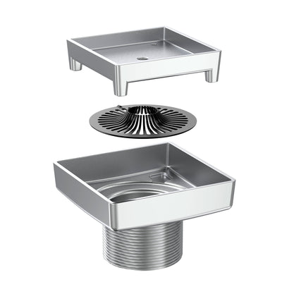 The Ebbe EBBE ETID-4-BN Legacy Solid Forged Brass Tile-In Drain in Brushed Nickel offers a timeless, high-end look combined with lasting performance. Made from solid forged brass and finished in a classic brushed nickel, this 4" tile-in drain blends cleanly with floor tile using a 2.9" textured tray that supports strong thin-set adhesion through five built-in weep holes. A 2" threaded riser allows for smooth height adjustment and accurate leveling, while the removable hair trap makes upkeep simple and quick. Perfect for sophisticated shower builds or renovations, this drain delivers both form and function with a refined touch.