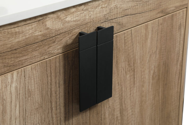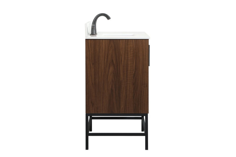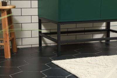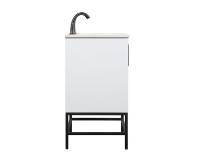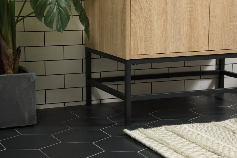 This vanity is a sleek-looking piece of bathroom furniture that is easy to incorporate into your design scheme. The cabinet features a smooth door panel with an oversized steel handle and soft close hinges provide ample room for accessories. Constructed of engineered wood, the powder-coated metal rod legs are an urban industrial look that we love. Minor assembly of the metal legs needed to get this vanity up and running.