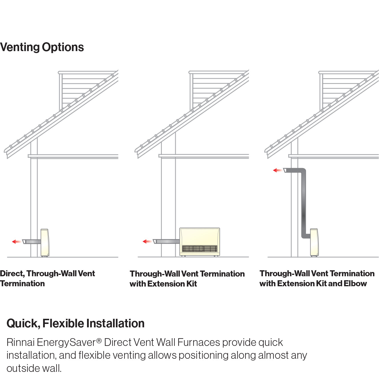 The Rinnai EX22DTN is a quick, flexible installed, ductless, propane gas, direct vent wall furnace from Rinnai; the perfect supplemental or specific zone heating solution that seeks out cold spots and within seconds begins to gently heat the room or space for maximum comfort. WiFi enabled thermostat connection ready.