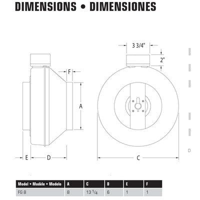 Fantech FG8 - 8" Inline Centrifugal Duct Fan