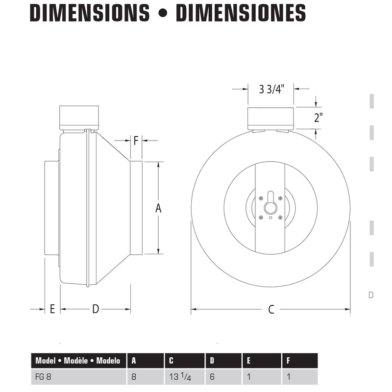 A multi-purpose inline duct fan for exhaust or supply air; ideal for commercial and residential ventilation applications. With the motor in the airstream, the FG 8 series fan provides constant dissipation of heat build-up that gives the fan first-in-class longevity and reliability backed by an industry leading warranty. The fan’s motor bearings are permanently sealed and self-lubricating for maintenance-free life.