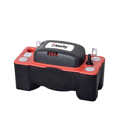 The Asurity FP-22 Condensate Pump is a 120 volt full-featured condensate pump designed for acidic and high temperature applications. It handles hot condensate water up to 190°F. Innovative features include vibration dampening feet, metal hang tabs, four inlet holes with built in “P” traps, LED indicators, safety overflow switch, check valve, and plug protector.
