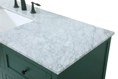 - Comes with an apron porcelain sink and durable marble stone top in Carrara white finish