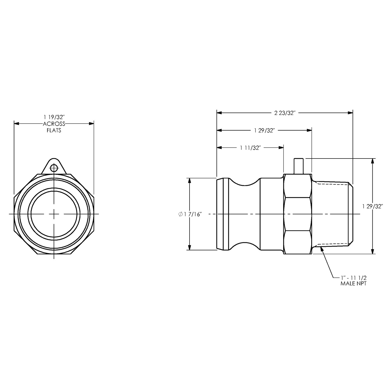 G100-F-SS - 1" Stainless Steel Cam & Groove Global Type F Adapter x Male NPT