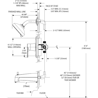 - Install with Posi-Temp pressure balancing control valve to maintain water temperature control in the shower