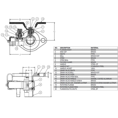 Isolator w/ Rotating Flange & Multi-Function Drain, Full Port Forged Brass Uni-Flange Ball Valve, w/ Detachable Rotating Flange, Multi-Function Hi-Flow Hose Drain, Adjustable Packing Glands, Nuts & Bolts