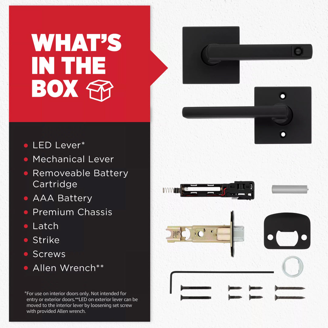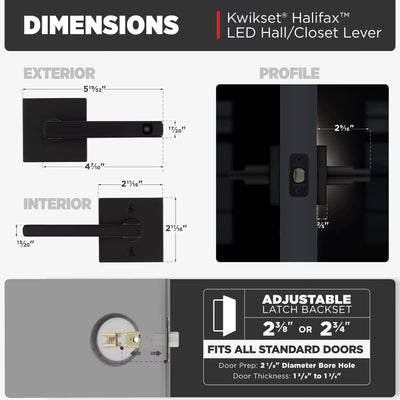 Kwikset Halifax Passage LED Lever w/Square Rosette - Matte Black
