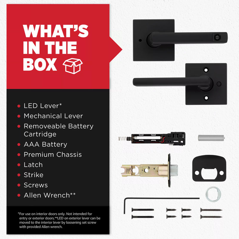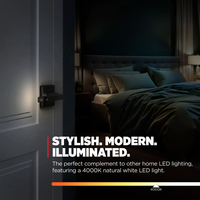 - LED Light: 4000k LED light illuminates the handle with a natural white glow. The long-lasting, energy-efficient LED light makes it easy to find the door handle in the dark or at night.