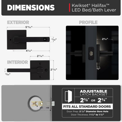 Kwikset Halifax Privacy LED Lever w/Square Rosette - Matte Black