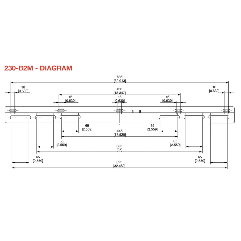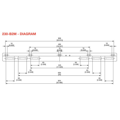 - Cross bar with pre-drilled slots for mounting to walls with studs at 12" or 16" on center